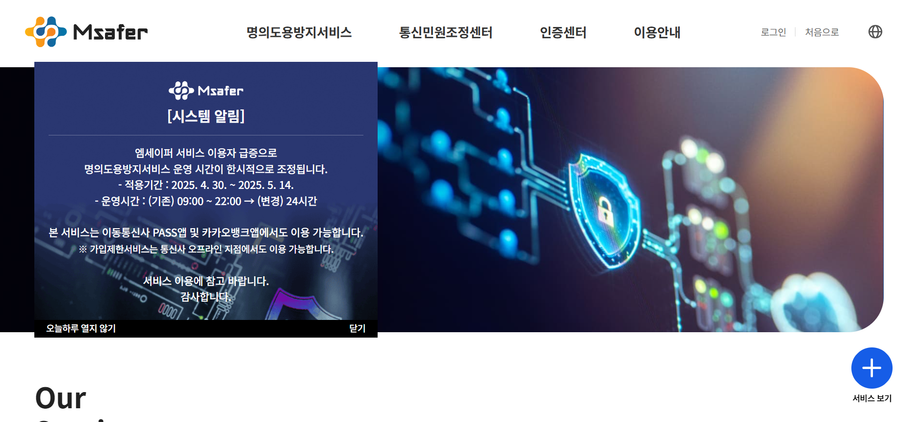 - 공식 사이트: 엠세이퍼 명의도용방지서비스 바로가기