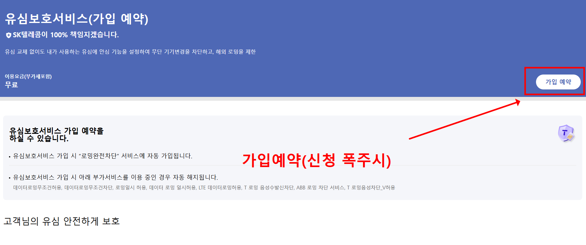 - 신청 후 피해 발생 시 100% SKT 책임 보상